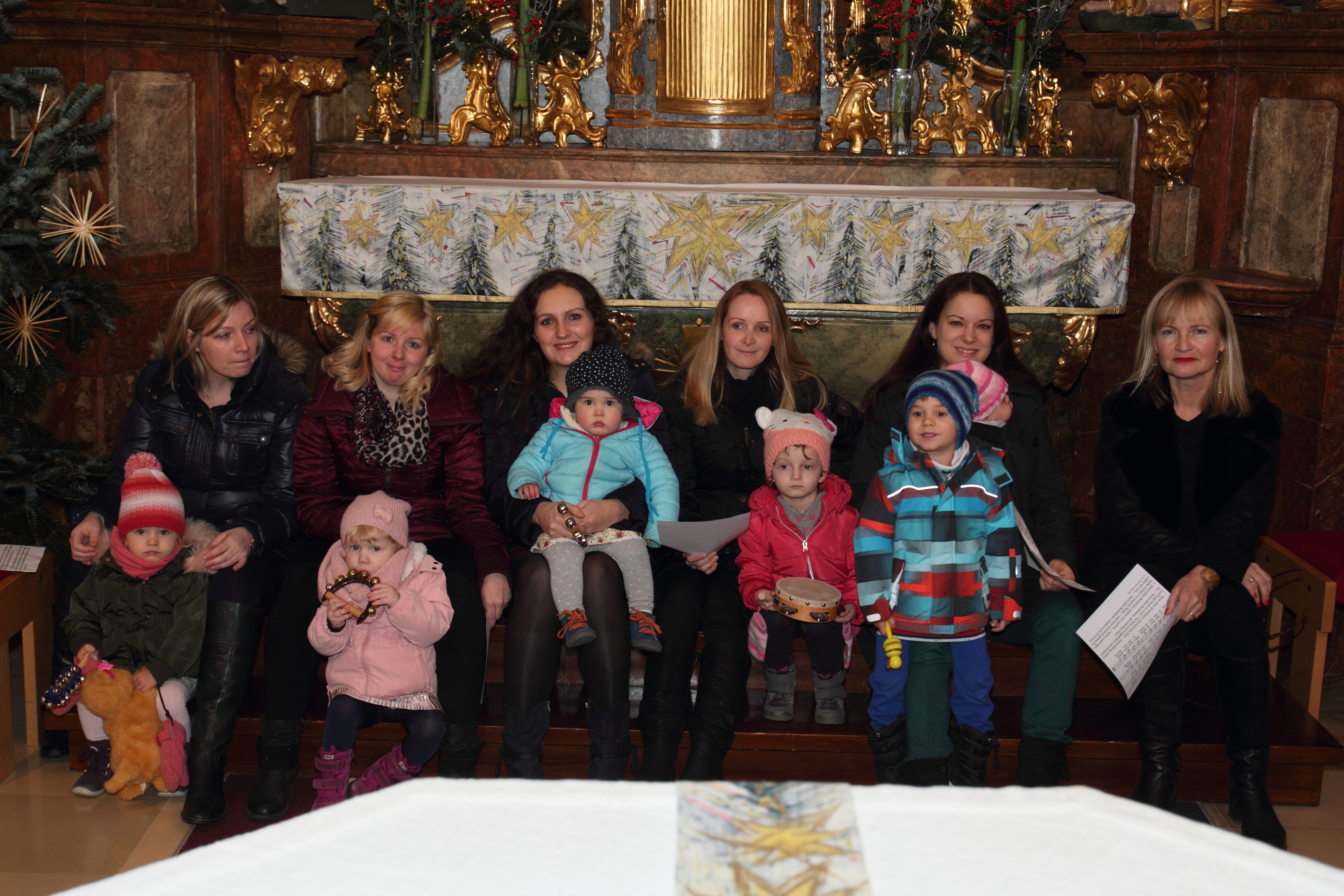 Gleich zu Beginn sangen die Mütter der Eltern-Kind-Gruppe "Stern über Bethlehem", die Kleinsten begleiteten sie lautstark mit Glocken und Schellen. Unterstützt wurden sie auch von unserem Kantor Walter Schranz auf der Gitarre.