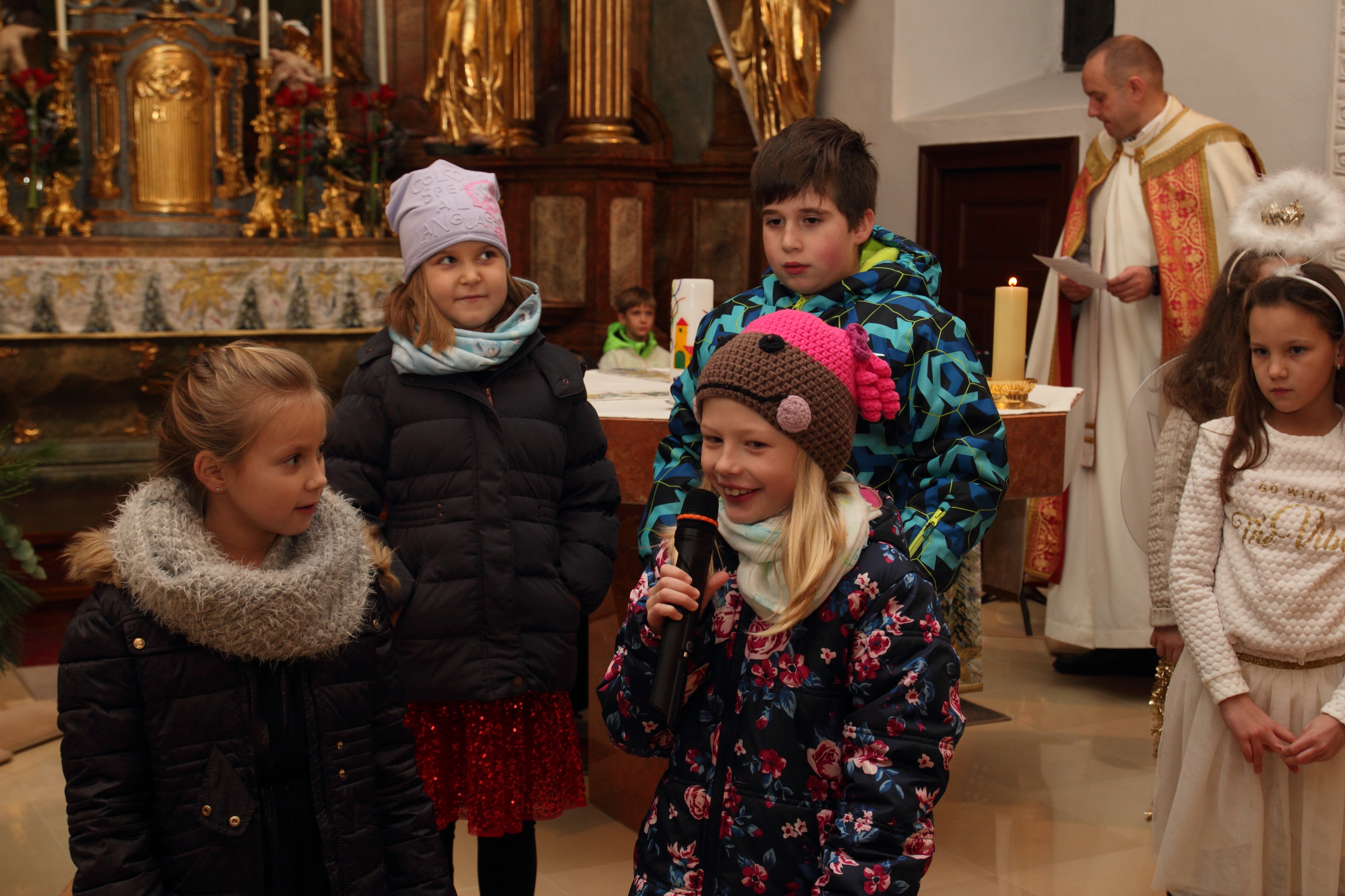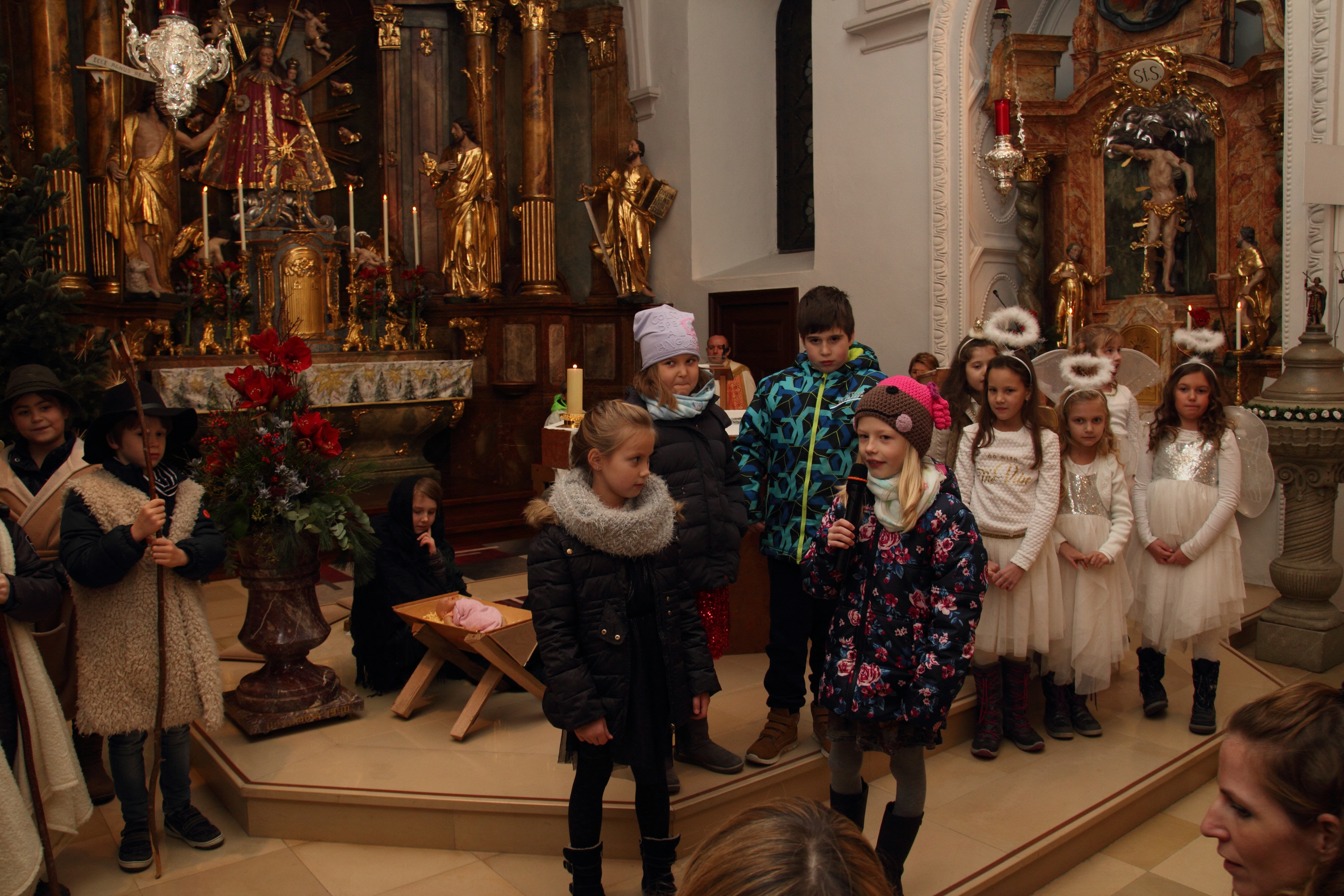 Pfarrer Damian erzählte die Weihnachtsgeschichte - kindgerecht, versteht sich.